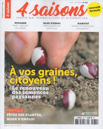 Revue de référence pour tous les jardiniers adeptes du jardinage bio, sans pesticides et respectueux de l'environnement, « Les 4 saisons du jardin bio » devenue « 4 saisons o » est la seule en France consacrée à cette thématique et à l'écologie pratique. A ce titre, elle est imprimée avec des encres végétales sur un papier 100 % recyclé. Avec comme ligne directrice de rester centrée sur le jardinage, elle fournit les meilleurs conseils de jardinage bio et traite de l'habitat écologique, de l'alimentation saine, de la santé, des animaux, de la technique, des questions de société...